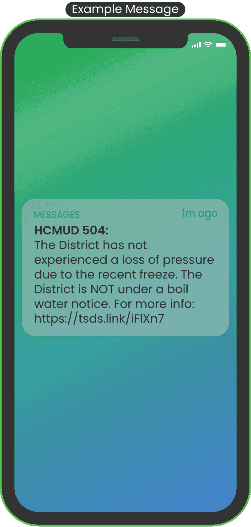 Residents registered for this free service will receive text and/or email notification explaining the basics of the situation with a short link to the news post on the District website with more complete details.